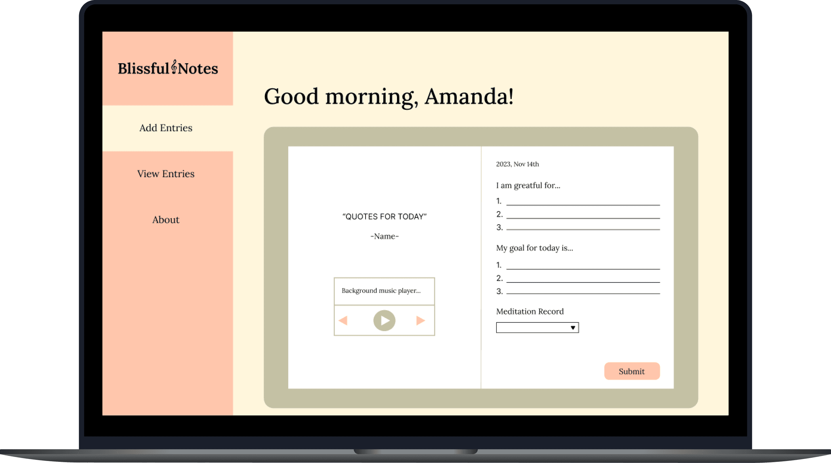 "Design and develop a daily gratitude journal website that helps users to be consistent with journaling."
